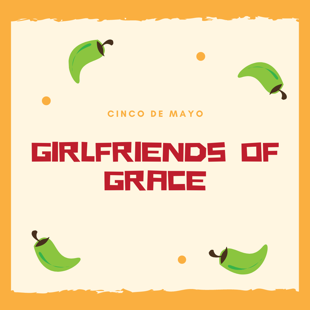On Tuesday, May 5 @ 7PM our Girlfriends of Grace will be hosting a Cinco de Mayo taco bar. They will enjoy some delicious Mexican cuisine and fun night of fellowship together. Please sign-up on Sunday morning with the items you would like to bring.